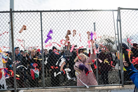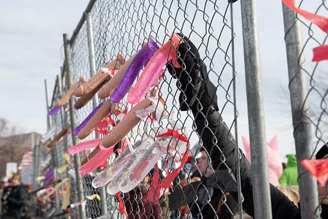 Thankfully many people brought dildos. Yes, it made for a fascinating day. The two excellent people that I met in the video at the top of the page were part of what streamer Jolly Good Ginger called “Operation Dildo Blitz.” And a blitzkrieg of dongs it was. People were putting them on the fences, on road signs and of course chucking the silicone sex toys in the direction of ICE’s building… and some of the cars that drove by.