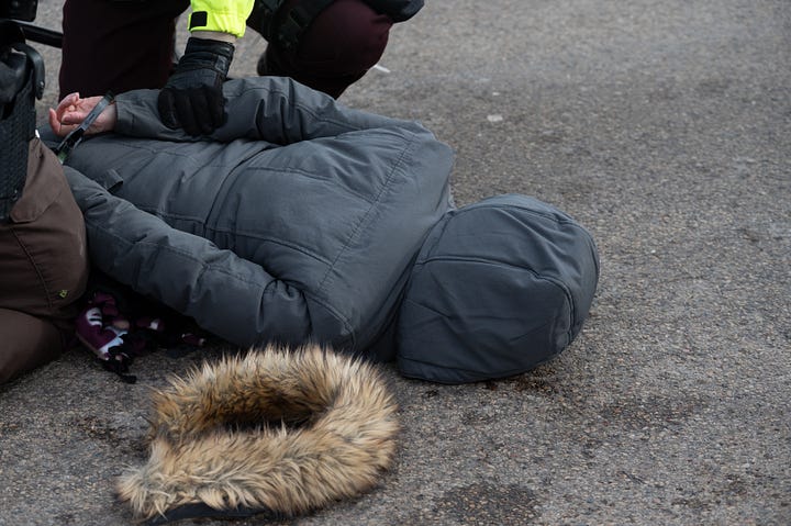 After a couple selected arrests that caused the crowd to retreat to the transit parking lot. The assembled law enforcement agencies decided that the parking lot wasn’t far enough and using an LRAD canon they announced that everyone was under arrest and charged.