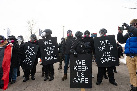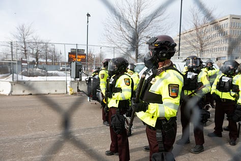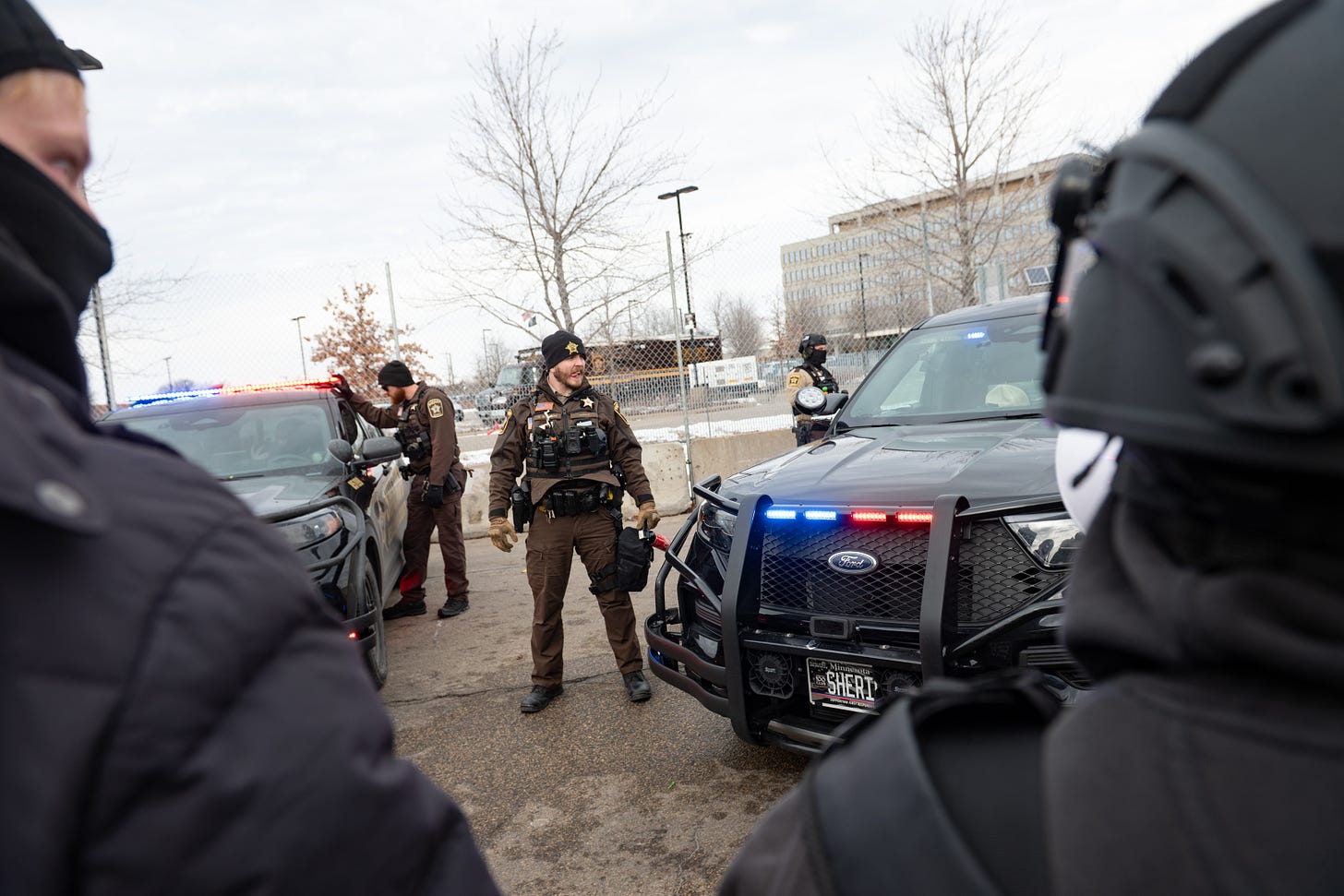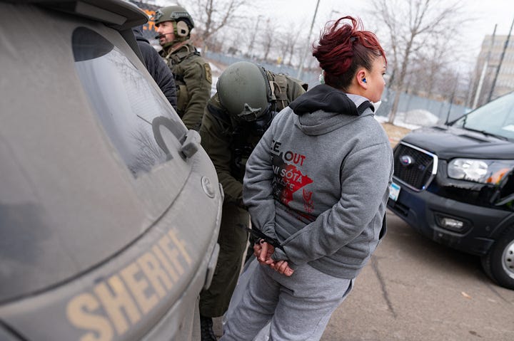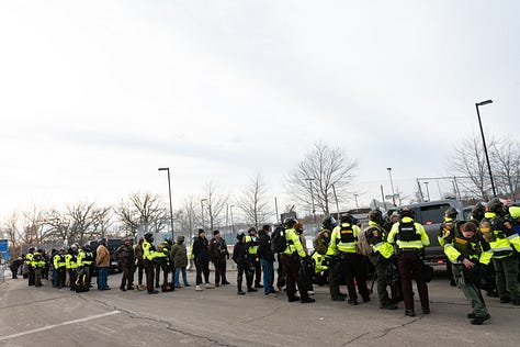 Clearly that was too much fun for the Hennepin County Sheriff’s department so they decided to start pushing the rallied community members back behind the fences that were erected to protect ICE agents from snowballs and swear words.