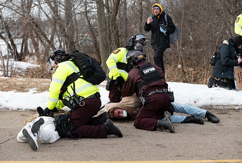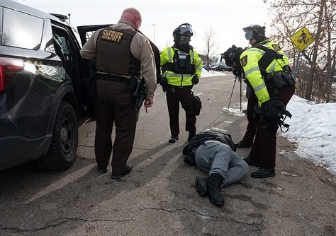 After many, many threats and me nearly getting run over by a very aggressive sheriff in an SUV, the Minneapolis State Troopers and Conservation officers joined in and started clearing the free speech zone completely. Governor Walz’s law enforcement agencies working together to help ICE have a slightly less uncomfortable time, once again.