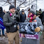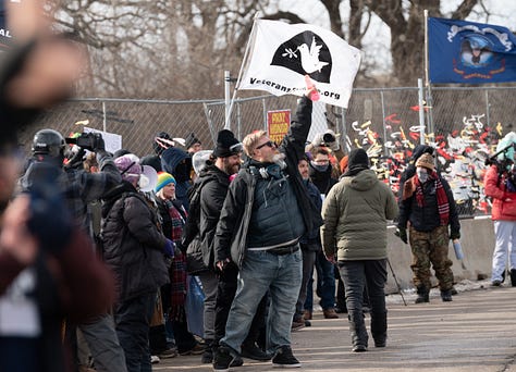 What a very odd day. I arrived at the Whipple Federal Building in Minneapolis early for a planned “press conference” by J6er and white supremacist Jake Lang. Almost immediately the clashing camo wearing wanna-be Klan member (they’d never let him into the Klan, he’s Jewish) arrived riding in the back of a U-Haul.